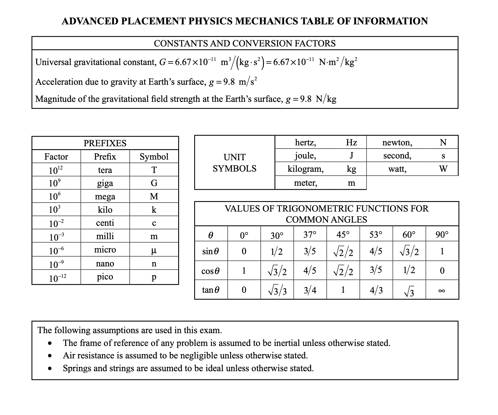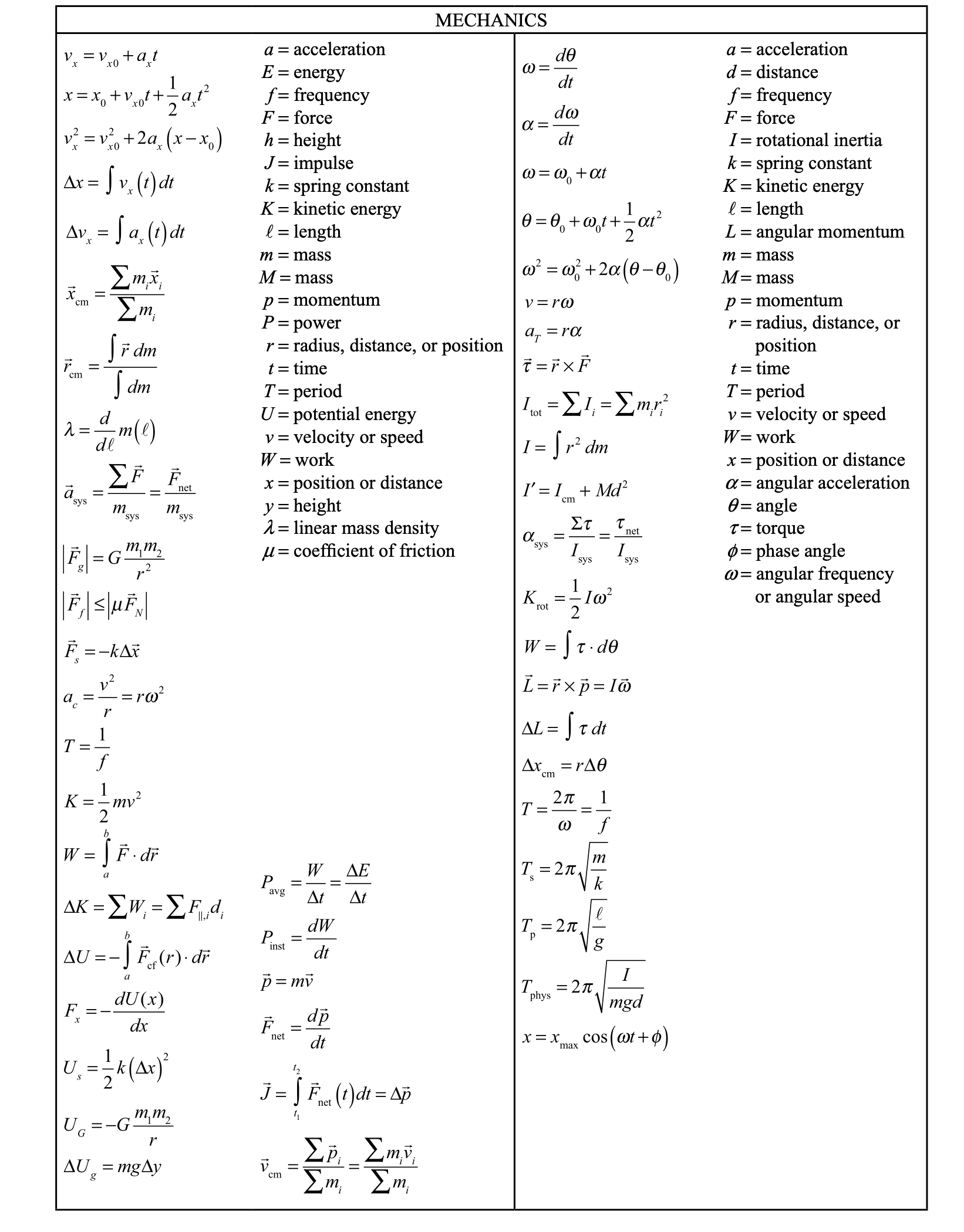 📖 AP Physics C Mechanics公式表